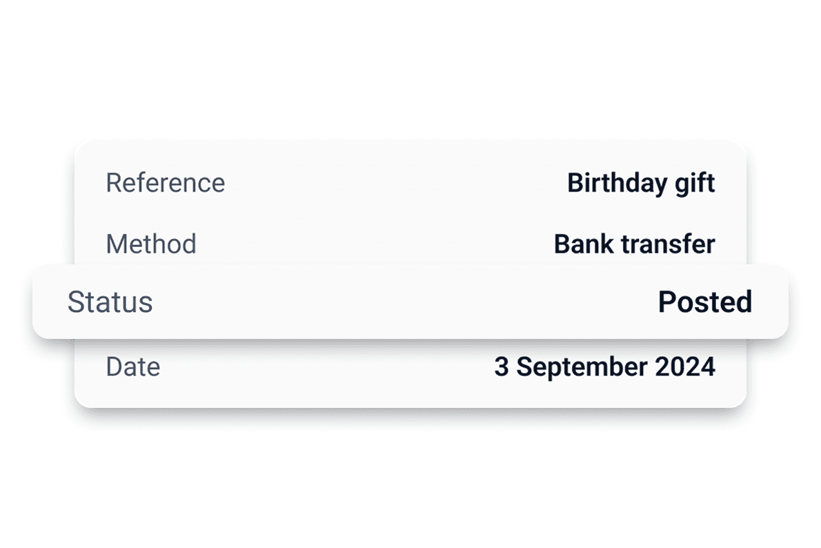 Track every transfer with real-time updates