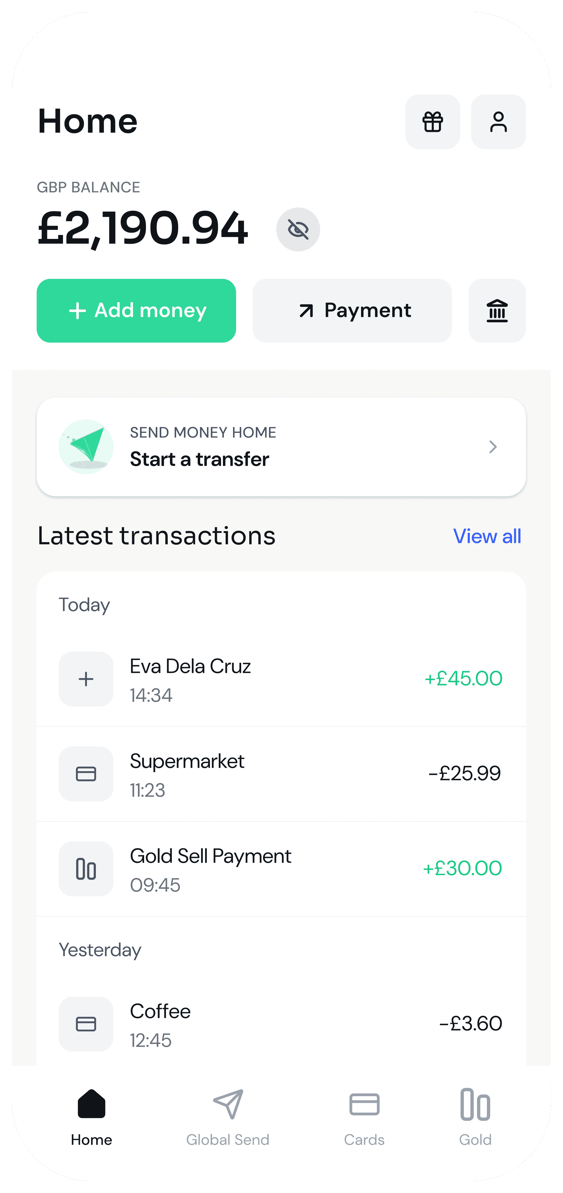Send £300 monthly for your niece's education while saving in gold for family weddings. Everything from one app, so you know exactly where your money is and where it is going.